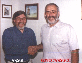 The above shows myself with Norm, VK5GI a fellow G QRPer (Nr. 9348). We had a very pleasant night with him and I am most grateful to Norm for his help in preparing for my trip, radiowise, down under. A man with a brilliant sense of humour, enjoyed by my family in Elizabeth and with whom I have quite a bit in common, apart from radio. We have the same surname, both were 'technicians' in the Health Service, my sister in SA and his XYL have the same first name, his wife is a Yorkie like me, we both are in the G QRP Club etc, etc! I will cherish memories of meeting Norm for many a year. GENERAL OBSERVATIONS. I suppose the two QSOs with GM3JKS were the high light of the operation, but a VK/VK contact also was memorable for me. Several years ago, I called CQ on 20m, CW with one watt output to a dipole and was answered by Snow, VK3MR. I managed to work him this holiday from Elizabeth Downs, Adelaide. This struck me as unusual, working a VK3 as a G, then many years pass and I work him as VK5GCC! Must be a record! No US stations were worked, several times I tried but was unlucky. All the QSOs were on CW, all on the QRP Plus and all using the end fed wire. I wonder what would have been worked with a beam! Still it was a great adventure on the air, and although I did not spend a lot of time operating (the main reason for the holiday was to see family and do a bit of touring - including Alice Springs, Ayre's Rock, Melbourne etc). I did notice plenty of packet activity on the bands, including 7.035 and CW up to 7.040 mhz. 10.106 mhz was hit by QRM as it is in G land. Packet was evident on 14.060, a change from Amtor - on the 'QRP frequency'! In one location, Victor Harbor SA, the bed springs were found to be a good earth! 20m didn't seem to 'wake up' at all until 1500 local any day, but stayed open quite late. When it was open, JAs were in evidence on SSB over the whole band, seemingly having a band plan unknown to me! Although I had quite a few QSOs, I never heard or worked any QRPers at all! It was a revelation though, to both listen and have QSOs on the bands from 'Oz'.