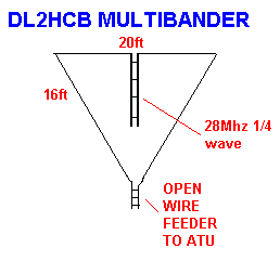 The next step was to convert it into a multiband antenna, giving comparable results to a mono-band loop or dipole. At the open end of the loop a 1/4 wave shorted stub for 28Mhz was added. The stub and the feed line is made of 450 ohm ladder line. The stub opens the loop on 28Mhz, on all other frequencies the antenna is working as a closed loop.