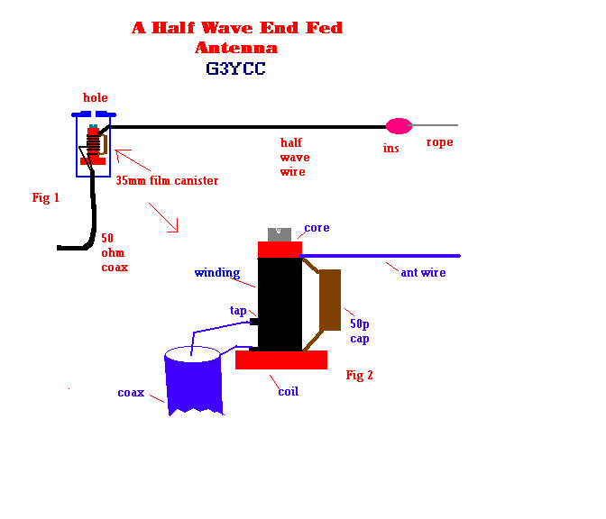 This end fed type of antenna was marketted in the UK and is a useful system for the portable set-up. Being a half wave, no radials or counterpose wires are needed.