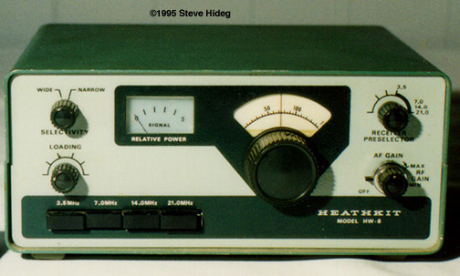 Power output on transmit is quoted as 2 watts and the rig draws 430 mA on transmit and just 90 mA on receive from a 13.8 volt DC supply. Bands covered are basically the CW portions of the 3.5, 7.0, 14.0 and 21.0 mHz bands. Audio filtering is included (two 741 op amps) are useful inclusions. The size of the HW8 (9.25 x 8.5 x 4.25 ins) and weighing in at 4 lb, makes it a popular rig for portable and mobile home use.