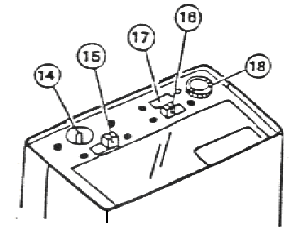 14 = EXT DC/NICAD CHARGE, 15 = CHARGE/BATT SELECT, 16 = SSB/CW SELECT, 17 = ATTENUATOR, 18 = EXT KEY