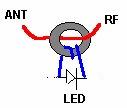 The simple circuit shown can be used to indicate RF in any homebrew rig, the presence of which causes the LED to illuminate.