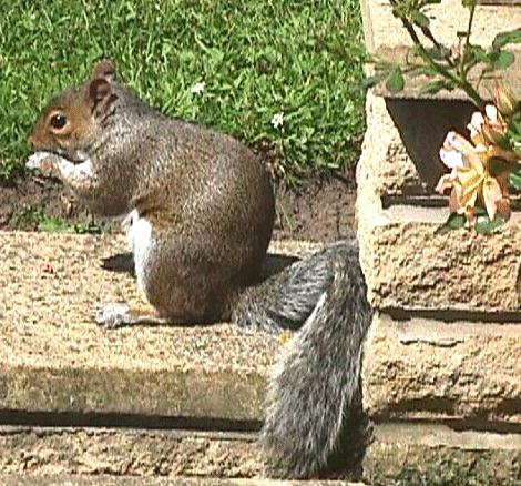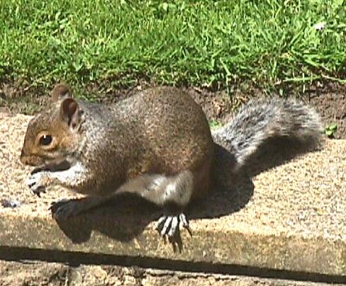 We have a family of three grey sqirrels that live in the trees at the bottom of our garden. The largest on is the boldest and will take food from my hand. However, having been nibbled once, I do not do this now!Yes, I know they are classed as vermin - but we like them and put nuts out for them each day.