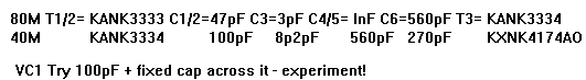 Details of tuned circuits for 80 and 40 metres are shown in the table.